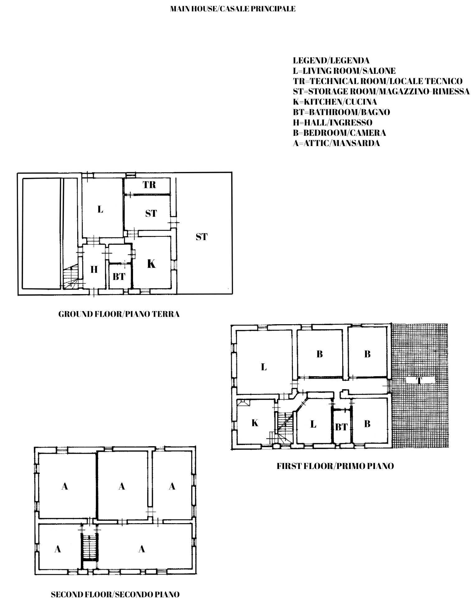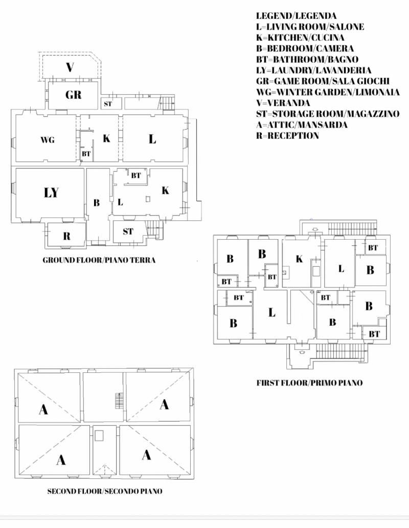 The property consists of a manor villa, a farmhouse, a guesthouse, and an old annex in need of renovation. The manor villa, approximately 370 sqm, is divided over three levels and stands on the site of an ancient monastery.