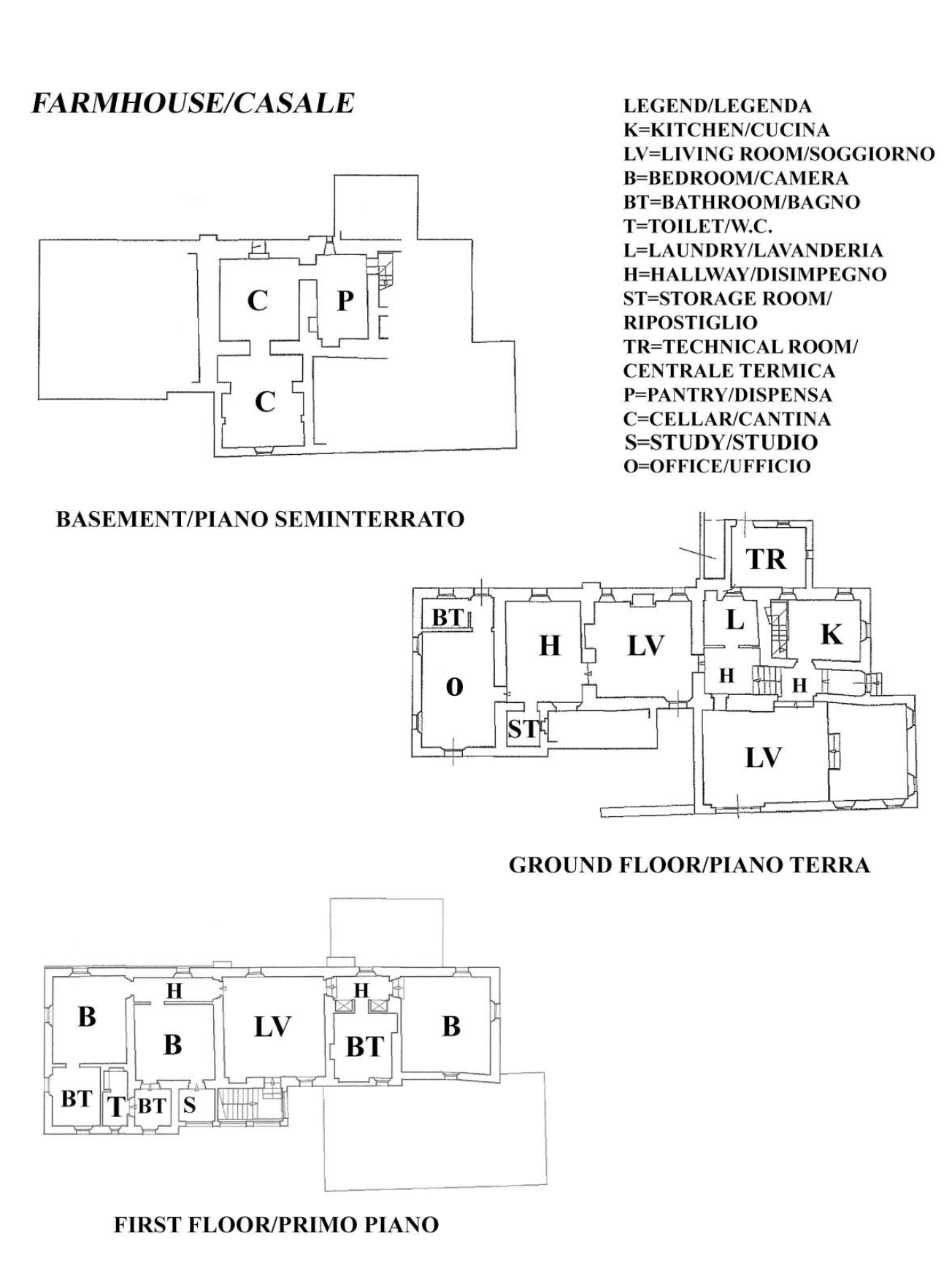 The property is arranged over three levels. The basement floor features a spacious pantry, a cellar, and an area currently used as a gym.