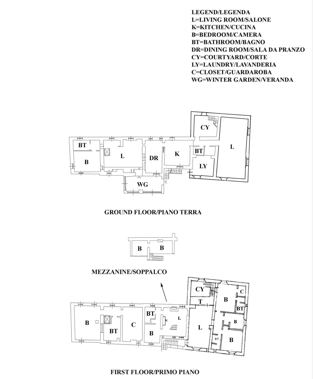 This wonderful property of approx. 985 sqm, immersed in the hills of the municipality of Bucine is on three levels and arranged as follows.