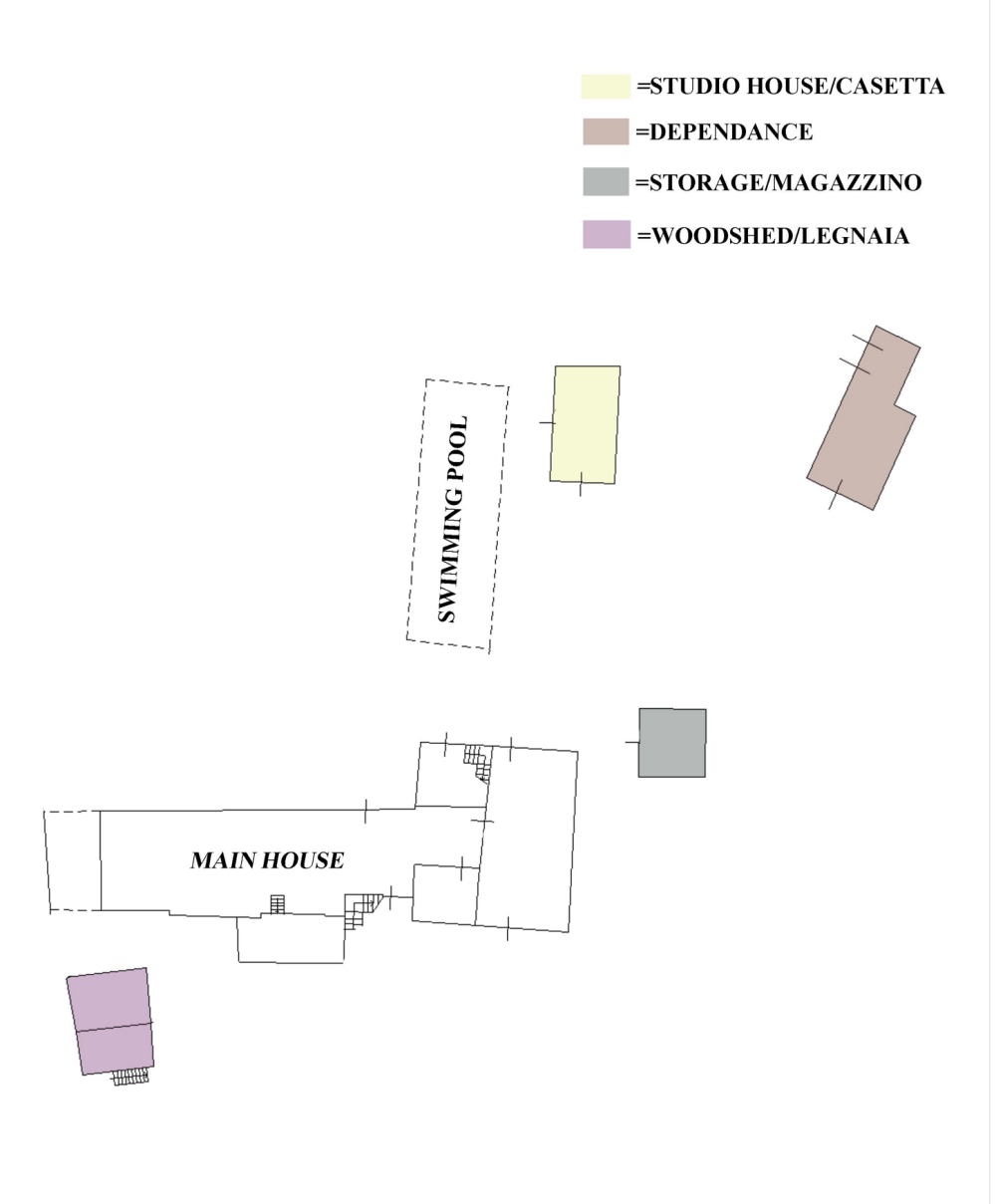 Other buildings on the property are the studio-house, a 74 sqm annex located next to the pool on two levels.