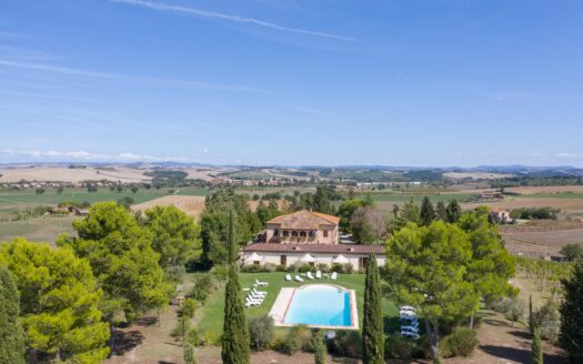 The property consists of an elegant main farmhouse and a guesthouse, for a total surface area of approximately 810 sqm, harmoniously integrated into the landscape. The ancient farmhouse has undergone a meticulous and respectful restoration, aimed at preserving its original identity through the recovery of authentic materials and traditional Tuscan proportions. The interiors, furnished with understated elegance, retain their historic atmosphere while seamlessly incorporating all modern comforts.