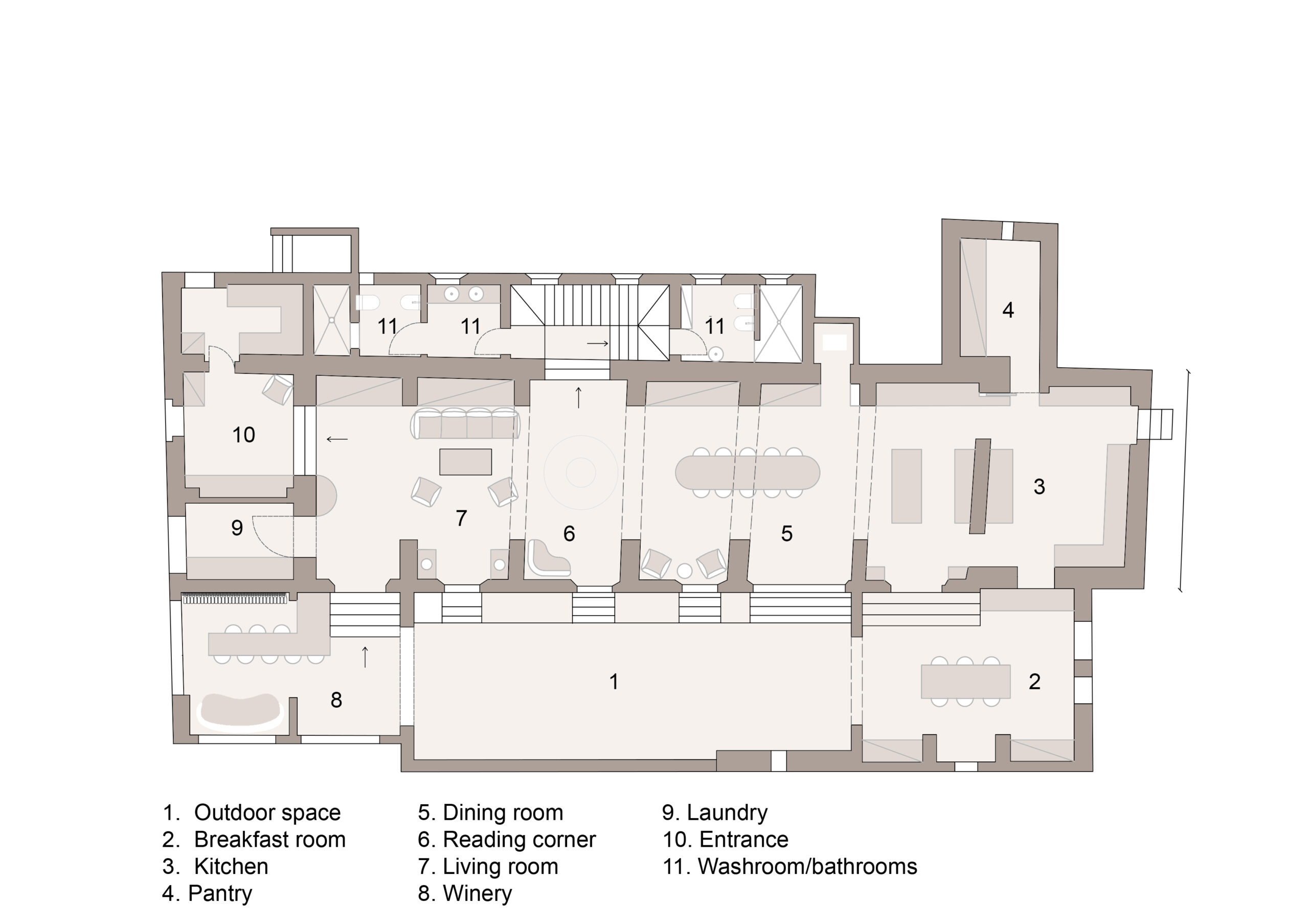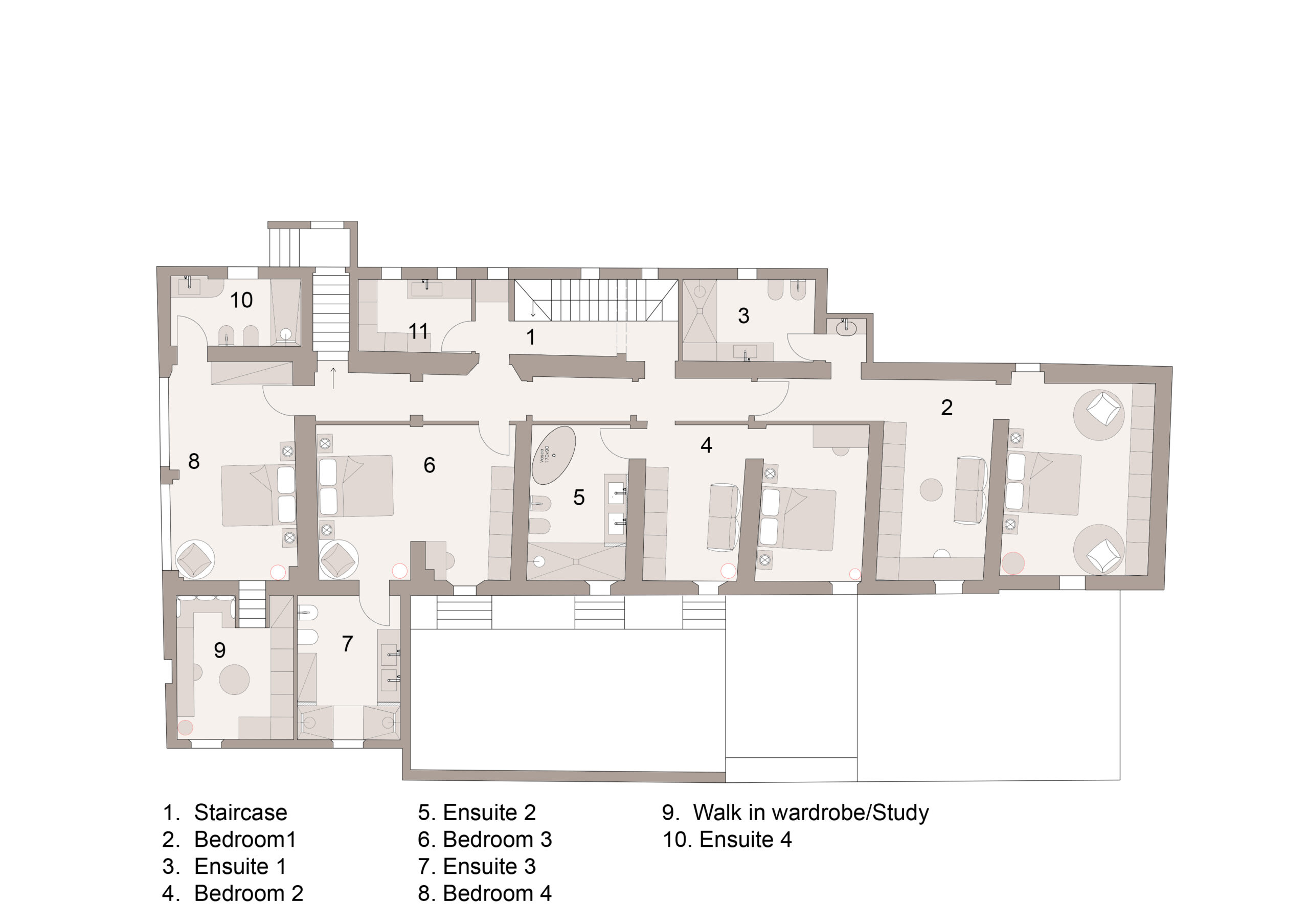 The structure is suitable both as a private villa and as a boutique hotel boasting from 8 to 12 bedrooms and bathrooms.
